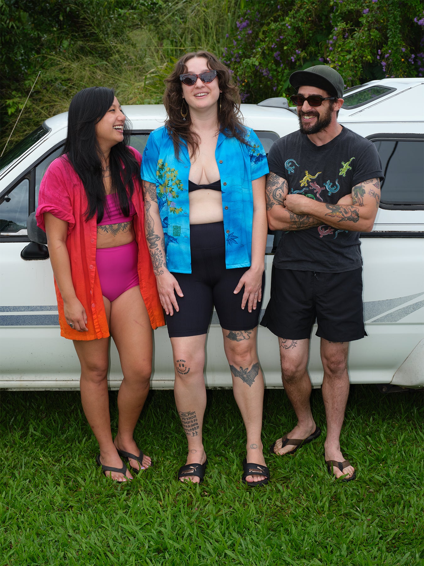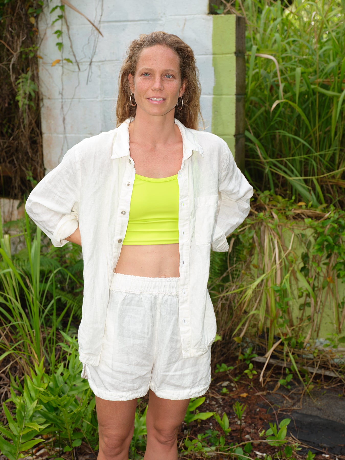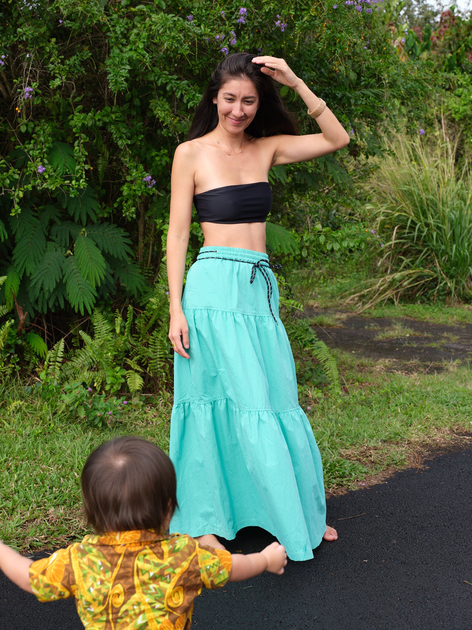 For our 2023 Lookbook we photographed friends who embody Pali, the meeting of land and sea. Pali People spend as much time enjoying the water as they do honoring the land. They are swimmers, they are chillers and they are lovers of the place we call home. Everything was shot in co-founder Martha’s backyard in Hilo, Hawaii.