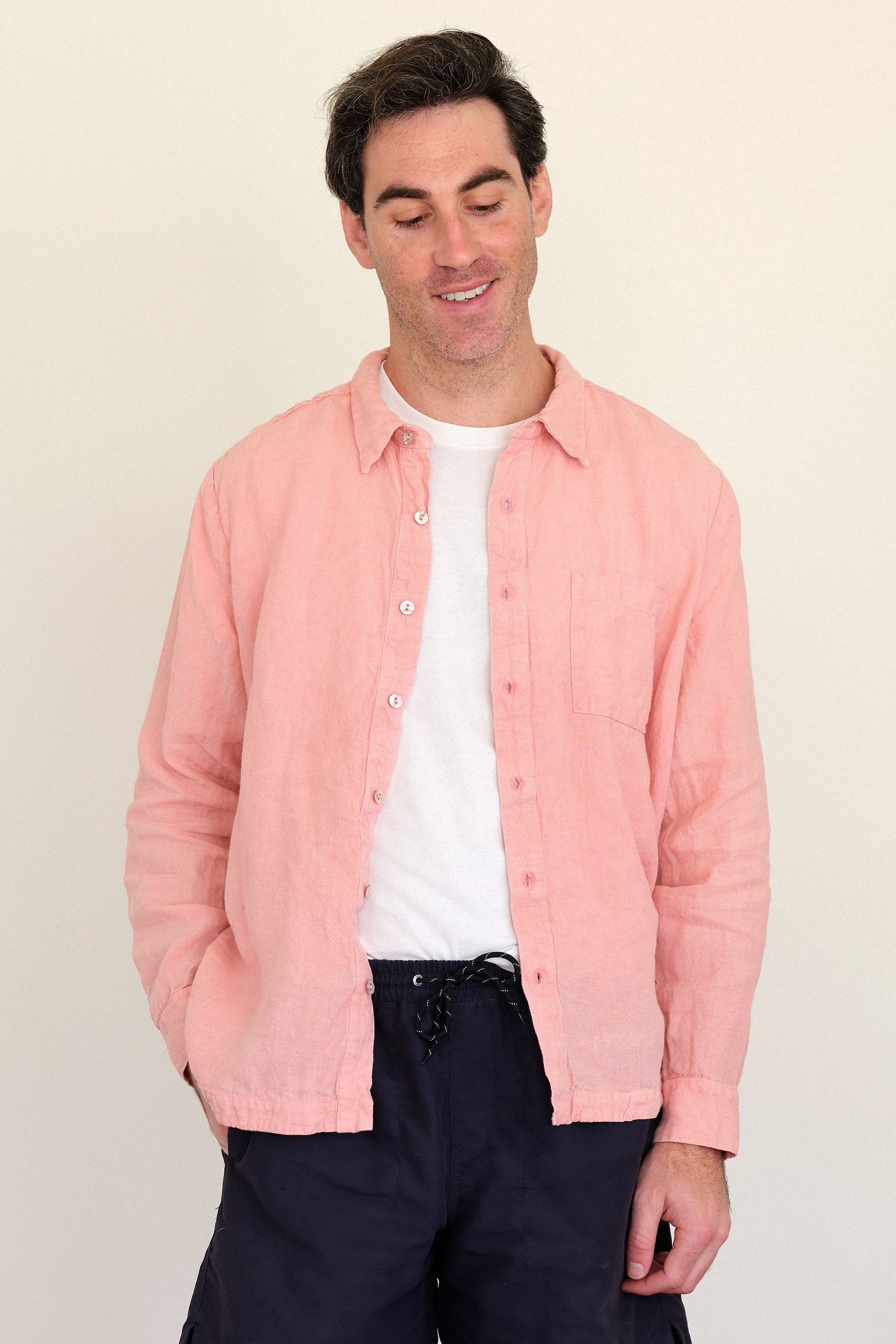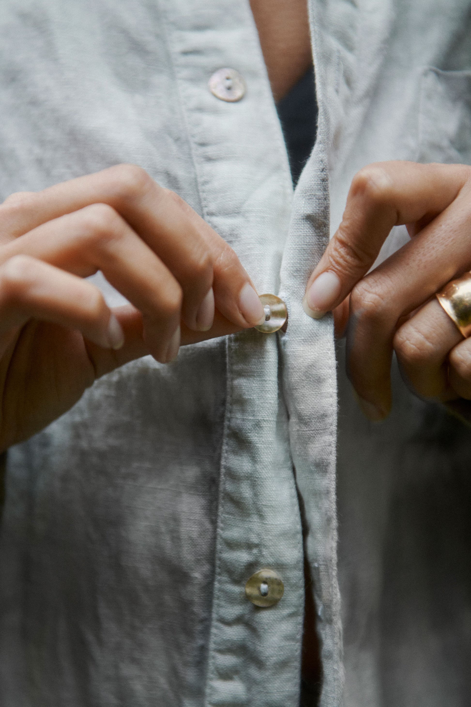 Plant dyed garments will vary in color and fade over time. To best care for your linen garment, hand wash cold with like colors using neutral detergent and lay flat or hang dry. Avoid drying in direct sunlight to better preserve the natural color.